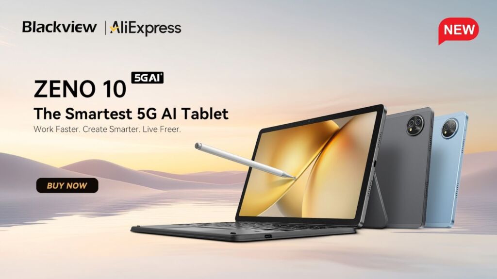 La tablette IA nouvelle génération de Blackview, Zénon 10Conçu pour ceux qui recherchent des fonctionnalités intelligentes, du divertissement et de la productivité dans un seul appareil, cet ordinateur portable est doté d'un écran FHD+ de 11 pouces avec un taux de rafraîchissement de 90 Hz, certifié TÜV SÜD pour la réduction de la lumière bleue.
